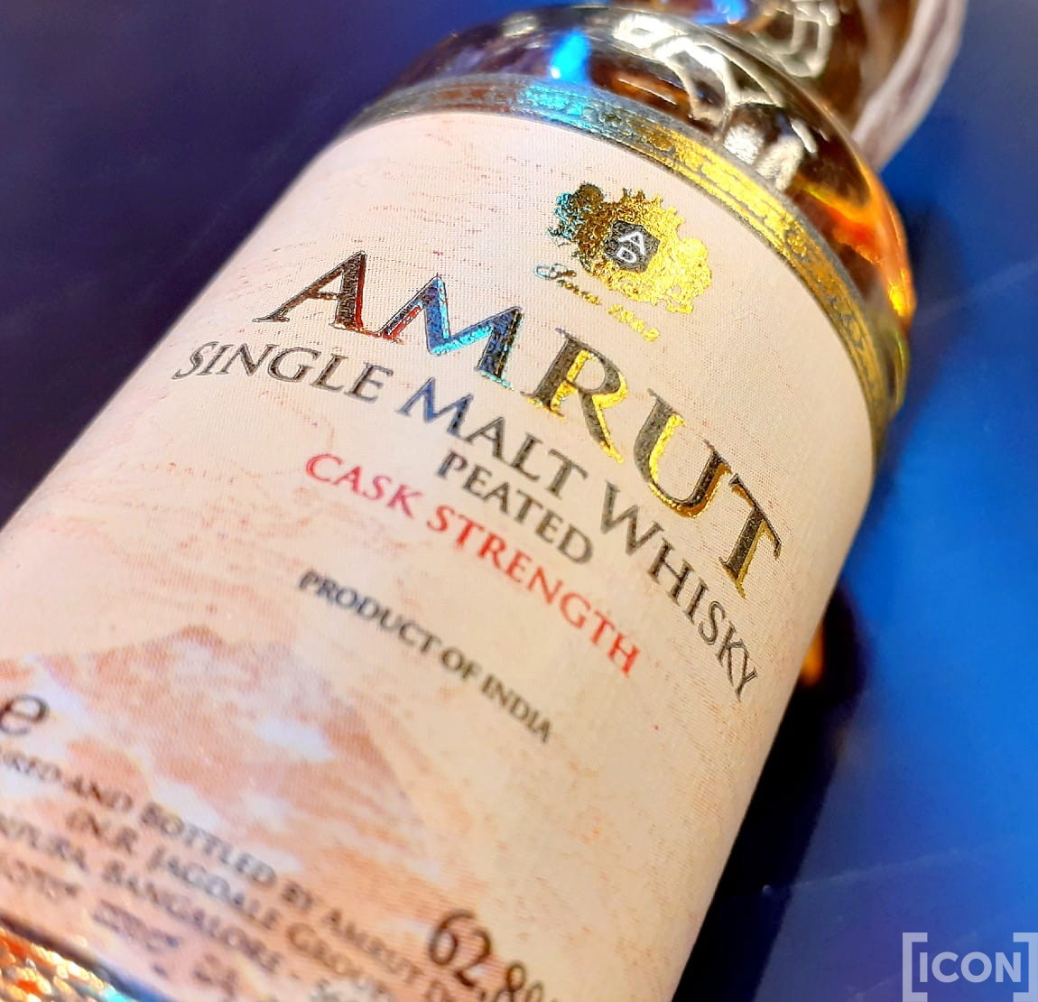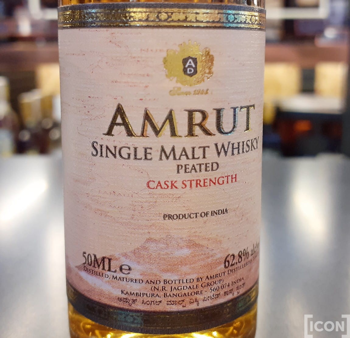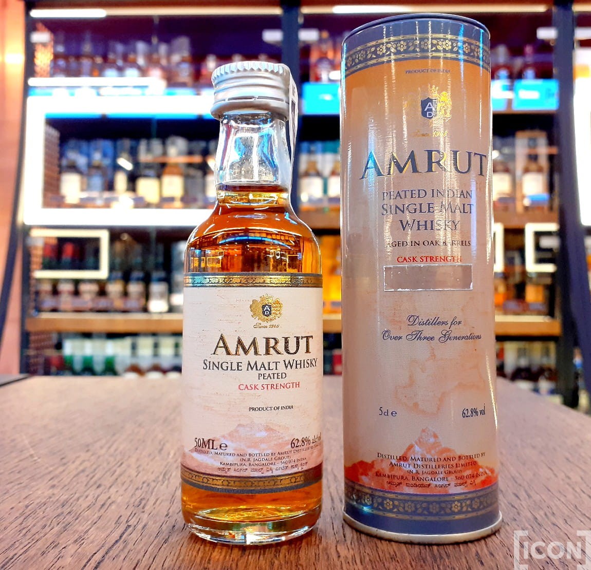 AMRUT PEATED INDIAN SINGLE MALT WHISKY CASK STRENGTH 0,05L + PUSZKA