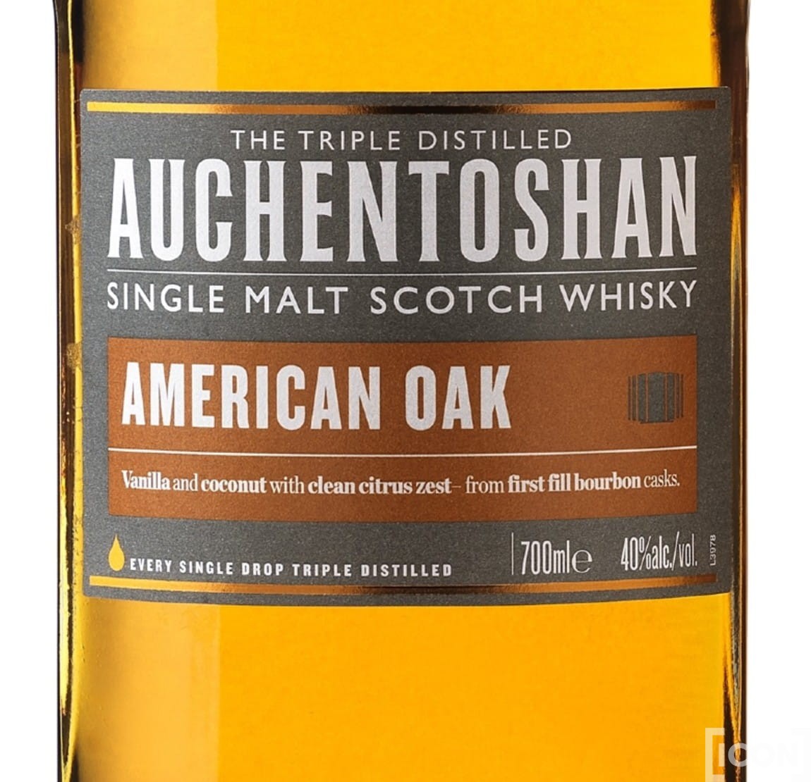 W przeciwieństwie do prawie wszystkich Single Maltów, które destylowane są dwukrotnie, whisky Auchentoshan American Oak poddawana jest trzykrotnej destylacji. Następnie powstały destylat przelewany jest do beczek. Destylarnia Auchentoshan używa do produkcji jej beczek z amerykańskiego dębu po bourbonie, pierwszego i drugiego napełnienia, dzięki czemu finalny produkt nabiera wyraźnego, waniliowego charakteru.