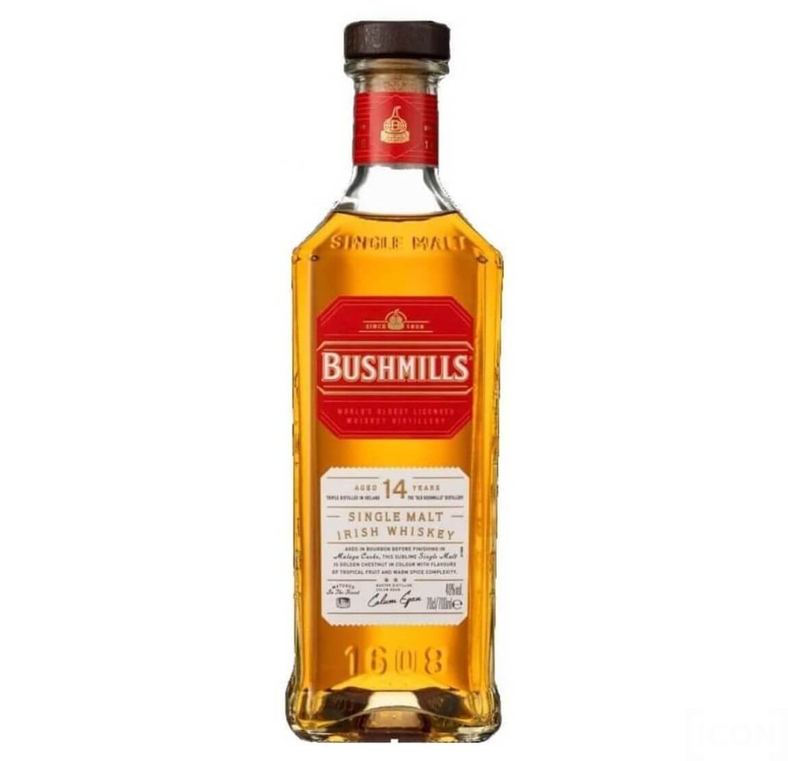 Bushmills 14YO butelkowana jest w elegancką, klasyczną butelkę z etykietą w odcieniach złota i borda. Ta edycja została zamknięta w typowej dla whisky Bushmills tubie o żywo czerwonej barwie i złotych akcentach. Jednak jak to zwykle w przypadku whiskey bywa, to jej atrybuty świadczą o jej wartości: